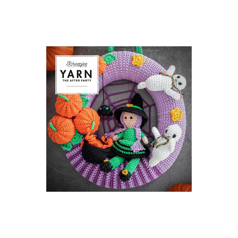 Dobd fel otthonodat ősszel ezzel a különlegesen aranyos Halloweeni koszorúval, amelyet Val Pierce tervezett a Scheepjes Yarn - The After Party sorozatához. Ez az amigurumi dekoráció nem rémisztő, inkább bájos és játékos hangulattal tölti meg az otthonodat, tökéletes választás gyerekes családoknak is.
